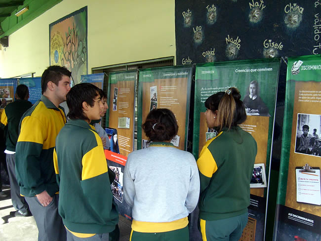 La exposición “Libertad de Ser. Historias de discriminaciones y diversidades” fue guiada por alumnos del nivel secundario, de 3°, 4° y 5° año y 3° Polimodal, especialmente capacitados para cumplir esa función. Lo mismo sucedió con los debates de Free2choose: los alumnos capacitados moderaron los debates, en los que participarán el resto de los alumnos del nivel, del nivel primario, docentes y padres.